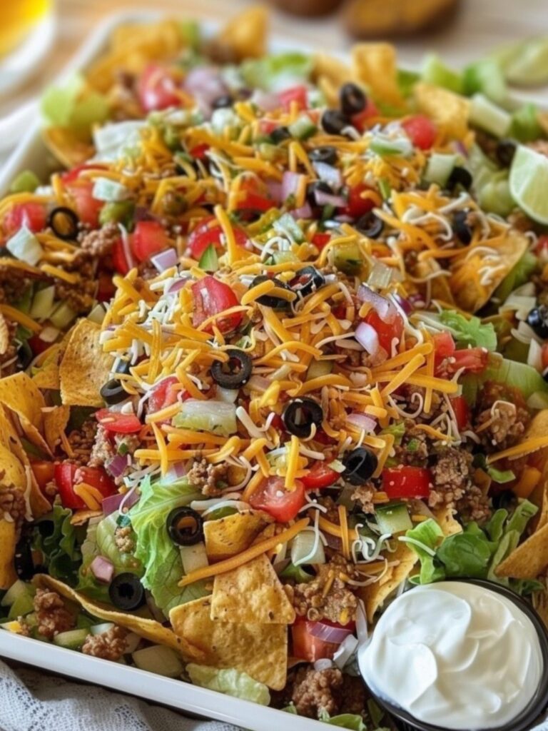 This loaded taco salad is a fresh, colorful, and hearty dish packed with crunchy lettuce, seasoned beef, crispy tortilla chips, and all your favorite taco toppings. It’s easy to make, …