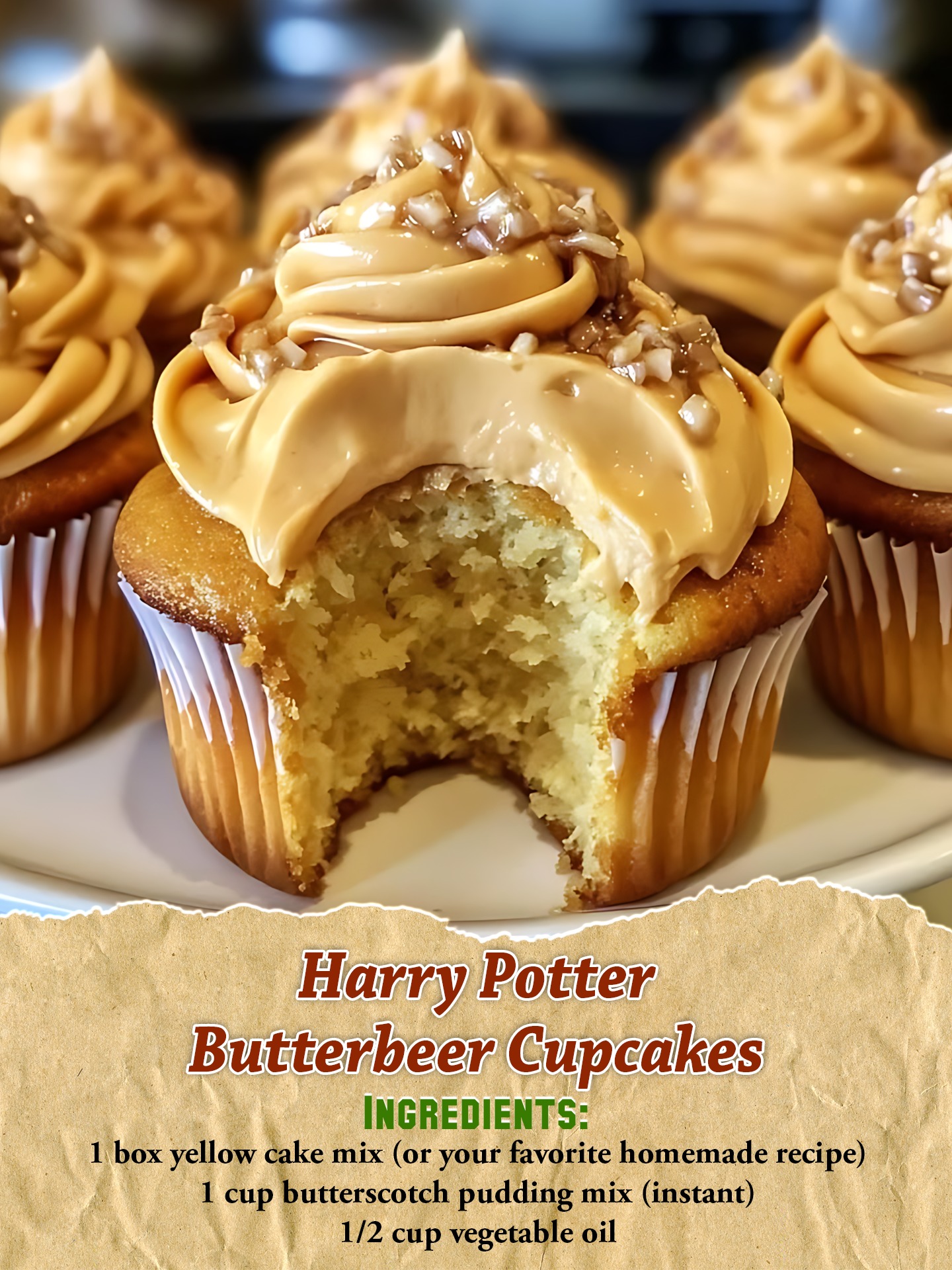 Pipe or spread frosting on cooled cupcakes. Add gold sprinkles, caramel drizzle, and themed toppers for a magical finish.