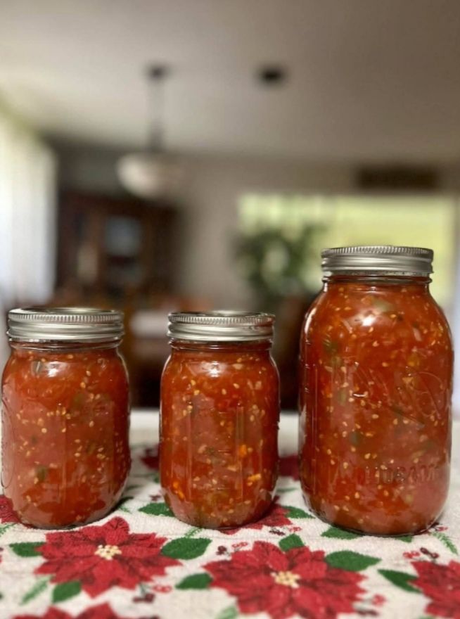 This recipe is easily customizable to your heat preference and makes a large batch that’s perfect for preserving in mason jars. It’s an economical way to use up garden tomatoes or take advantage of peak-season produce at the farmers market.