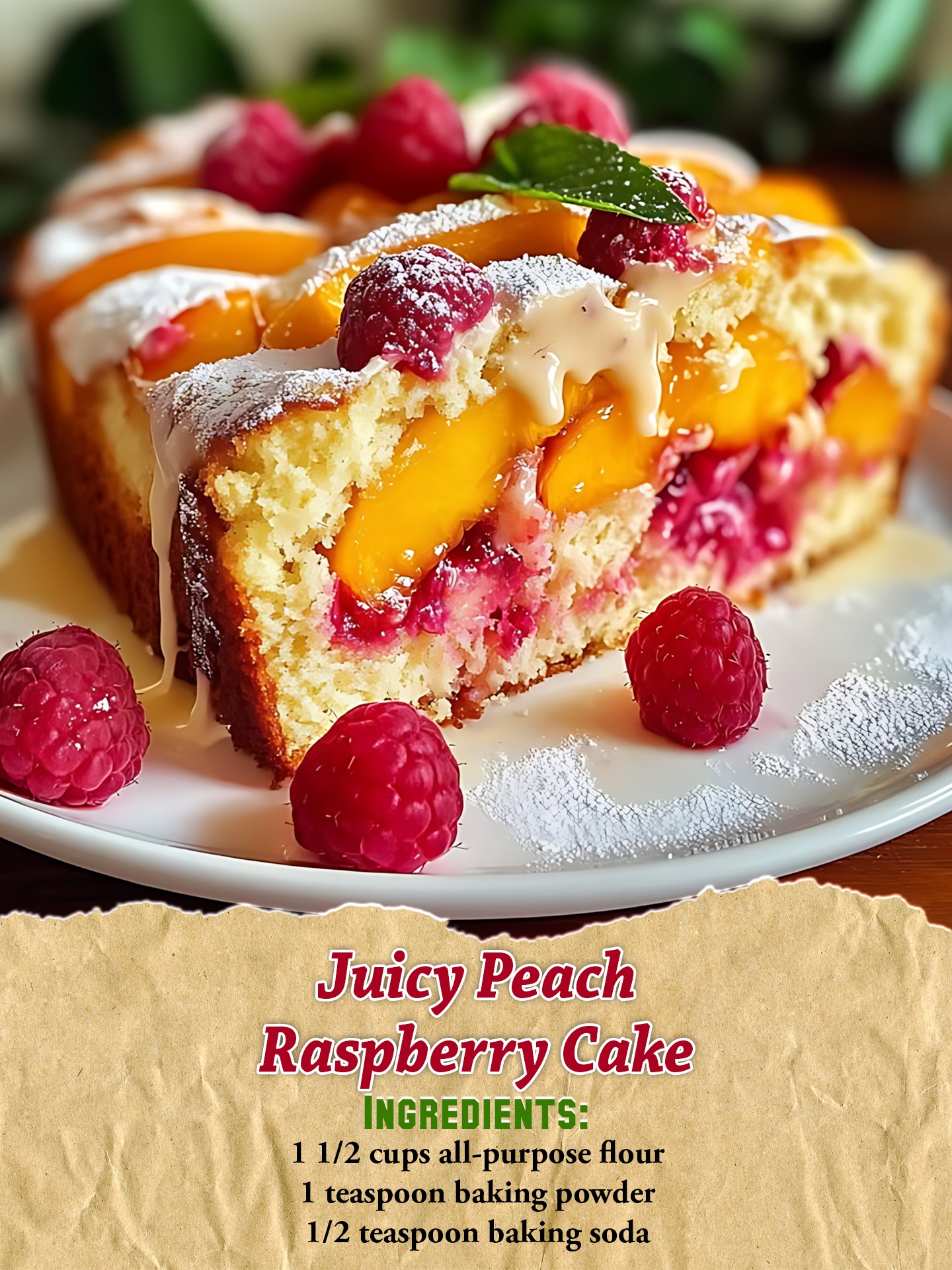 Fold in fruit: Gently fold in the diced peaches and raspberries.